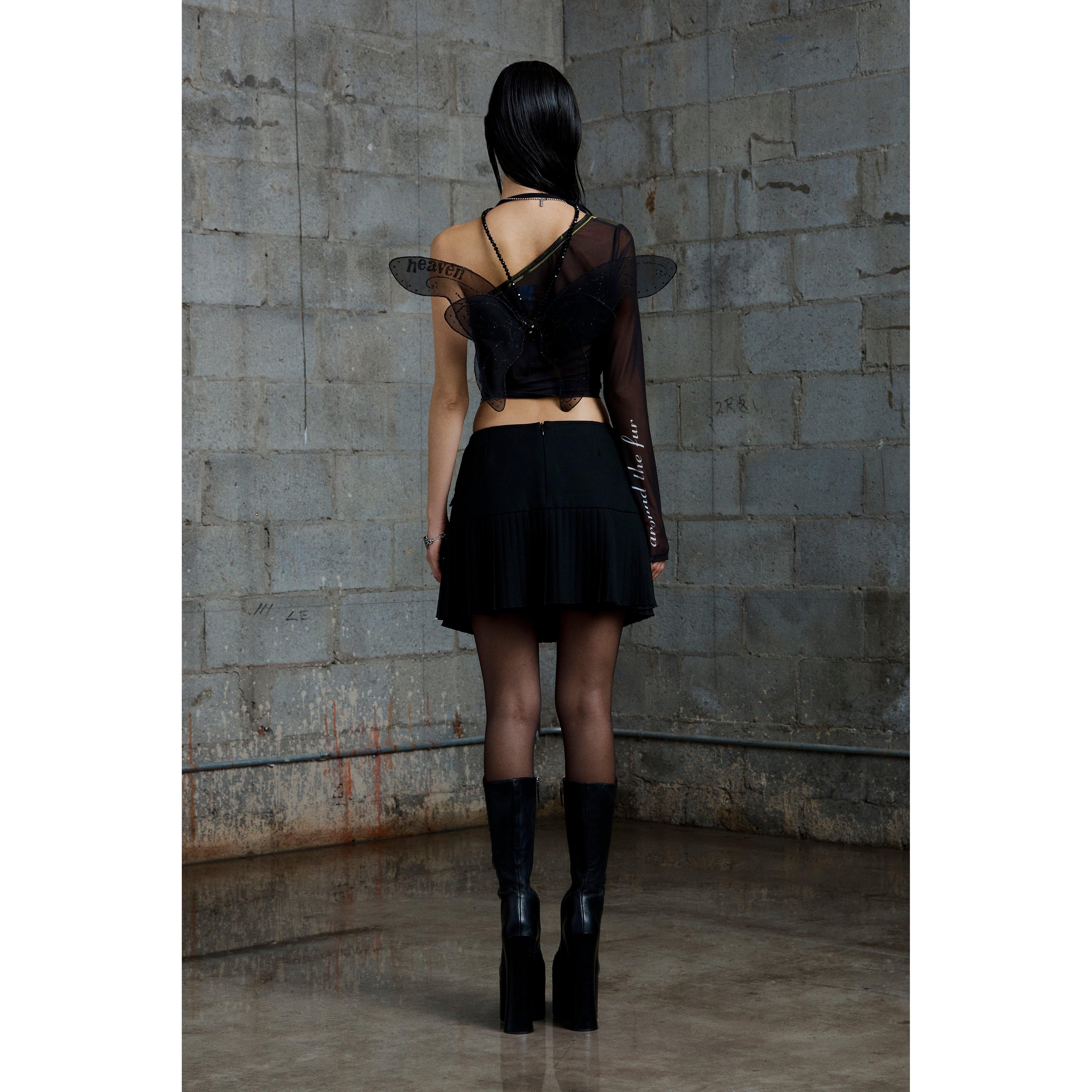 SHRUNKEN FIT MESH ONE SHOULDER TOP
