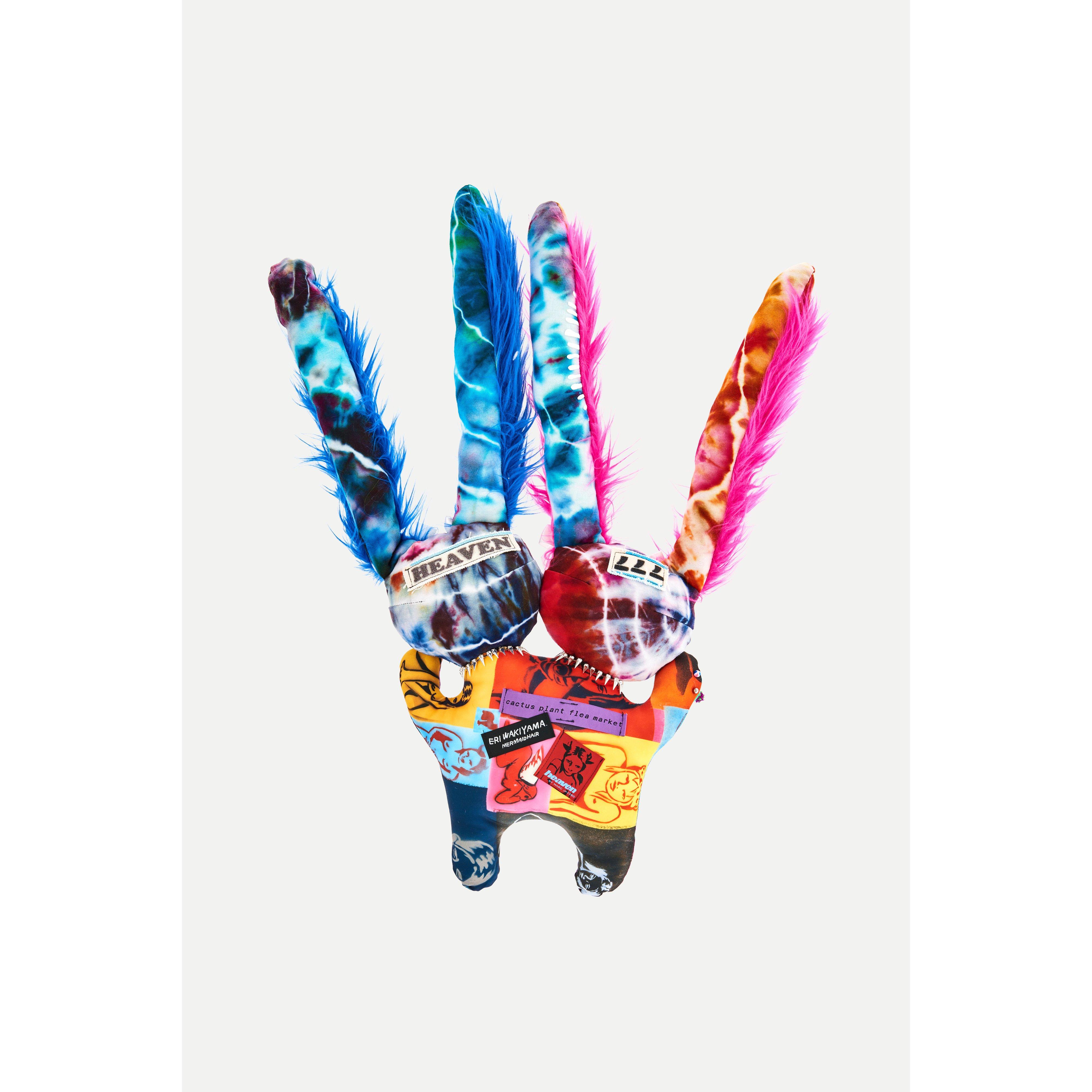 HANDMADE WITH LOVE FROM DEADSTOCK FABRIC AND ARCHIVAL TRINKETS FROM EACH OF THE COLLABORATORS, THESE CACTUSBUNNY! PLUSHIES ARE A THREE-WAY PROJECT LAUNCHED BY ERI WAKIYAMA, CACTUS PLANT FLEA MARKET, AND HEAVEN. LIMITED EDITION AND ALL ONE OF A KIND, EACH CACTUSBUNNY! COMES WITH ITS OWN CERTIFICATE OF AUTHENTICITY. WISHING YOU FOREVER LOVE, PEACE, AND HAPPINESS